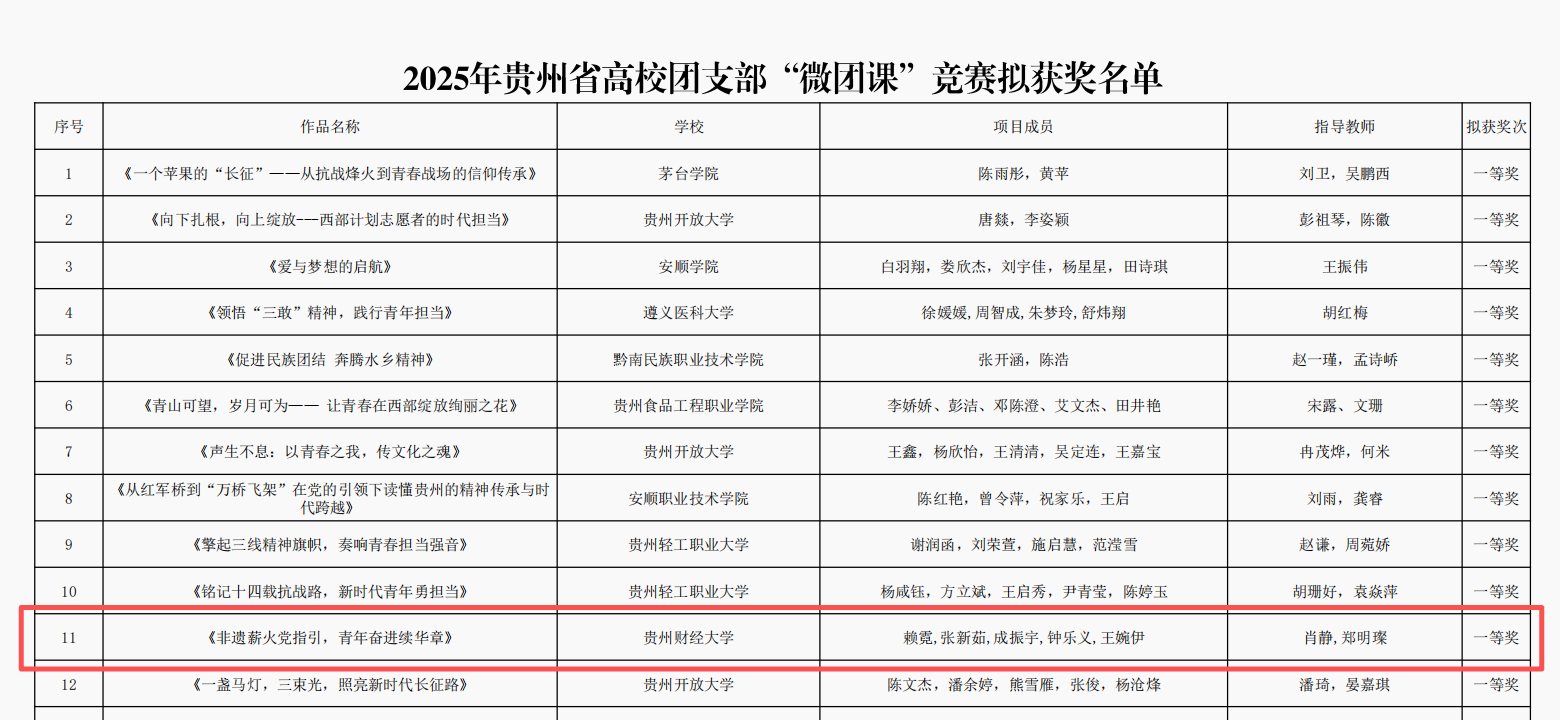 2025年11月21日,从贵州省高校团支部“微团课”竞赛现场传来捷报!我们2024级研究生团支部代表学校出战,与全省193支参赛队伍同台竞技,最终凭借其创新的展示形式、扎实的实践根基与深刻的理论融合,一举斩获大赛一等奖,实现了402cc永利官网在该赛事决赛路演中“零的突破”!